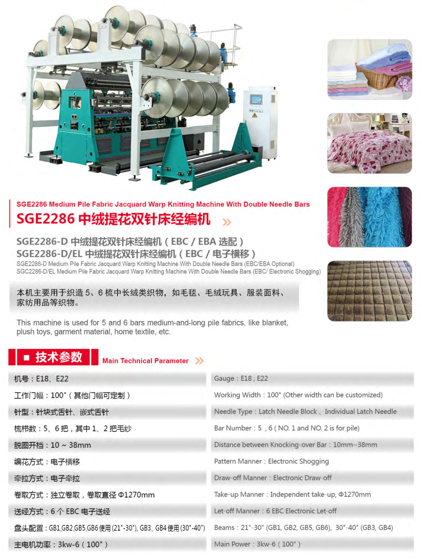 SGE2286 Medium Pile Fabric Jacquard Warp Knitting Machine With Double Needle Bars